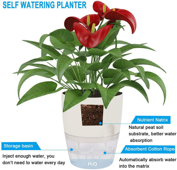 Self Watering Design: Often forget to water your plants? No problem. These pots water and feed your plant for up to a week or more. Now it's so much EASIER to grow happy and healthy plants! The plants use the wick to feed themselves water—at their own pace!